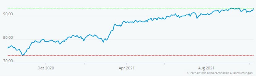 Das Portfoliobeta liegt bei 0,75 und die erwarteten Dividendenrenditen im Durchschnitt bei 3,3%.