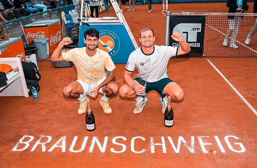Der Finaltag der 31. Auflage des ATP 125 Challenger Turniers BRAWO OPEN 2025 brachte neben einigen Regenschauern am Vormittag vor allem sensationelles Weltklasse-Tennis. Am Nachmittag des 12. Julis startete der zehnte und letzte Tag der BRAWO OPEN 2025 auf dem ausverkauften BRAWO CENTER COURT des BTHC-Geländes im Bürgerpark Braunschweig: Das Deutsch-Peruanische-Doppel Christoph Negrito/Alexander Merino traf dort auf den Amerikaner Vasil Kirkov und den Niederländer Bart Stevens. Es entwickelte sich ein spannendes, abwechslungsreiches Match, bei dem vor allem Kirkov herausragte. Der 26-Jährige attackierte und reagierte oftmals reaktionsschnell am Netz und markierte dabei wichtige Punkte. Vasil Kirkov und Bart Stevens siegten nach etwas mehr als einer Stunde verdient mit 6:2, 6:3 und sind damit die Doppel-Titel-Gewinner der BRAWO OPEN 2025. „Braunschweig war großartig. Es war eine Freude für uns hier zu spielen. Unser nächstes Ziel ist der Hauptfeld-Einzug bei den US Open“, erklärte der zufriedene Bart Stevens bei der Siegerehrung.