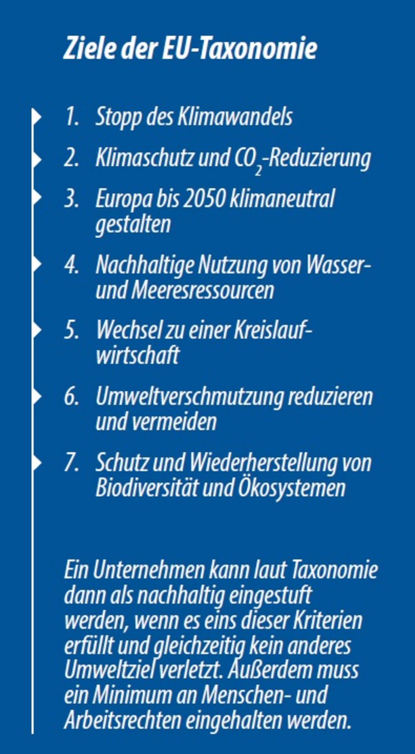 Mit der Taxonomie-Verordnung setzt die EU-Kommission einen ersten Schritt zur Festlegung, was wirklich als nachhaltige Geldanlage zu werten ist. Die europaweit einheitliche Klassifizierung definiert jetzt verbindlich, ob ein Investment in der EU als „grün“ bezeichnet werden darf.