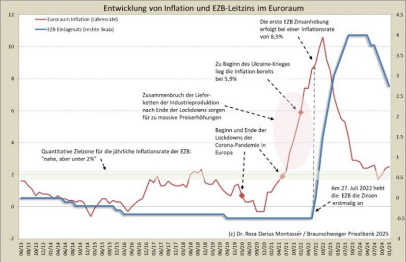 Um dies und die zukünftige Geldpolitik besser einordnen zu können, ist ein Sprung auf der Zeitachse, zurück in das Jahr 2022, genauer gesagt zum 22. Februar 2022, dem Beginn des russischen Angriffskriegs gegen die Ukraine, wichtig. Und tatsächlich markierte dieser Krieg, wie der damalige Bundeskanzler Olaf Scholz wenige Tage später am 27. Februar im Deutschen Bundestag feststellte, eine Zeitenwende in der politischen Nachkriegsordnung Europas.